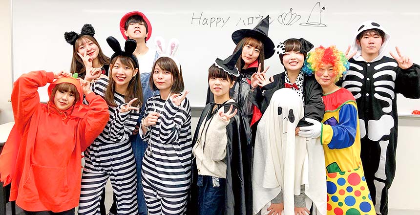 学生も先生も一緒にコスプレをして、盛り上がるよ!