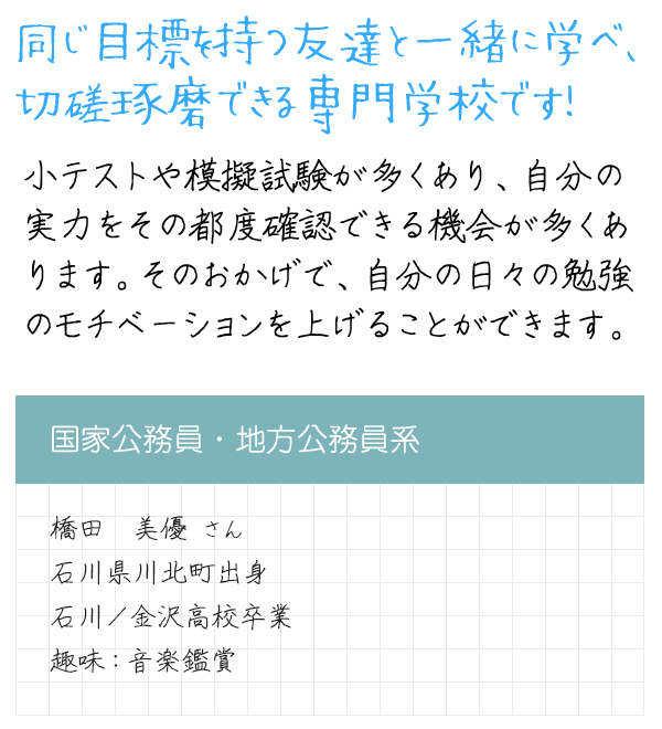 大原学園には、夢と希望をいっぱいに頑張っている先輩がたくさんいます。そんな充実した学園生活を送っている先輩たちの元気な生の声をお届けします!