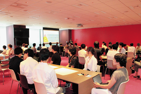 校内で学ぶだけではなく、大手IT企業の講演会やセミナー、オフィス見学ツアーを開催するなど、積極的な企業連携を行い、最新のノウハウや実践力を身につける質の高いカリキュラムを提供します。また、業界の第一線で活躍する現役エンジニアを招いての講演会や質問会も開催します。