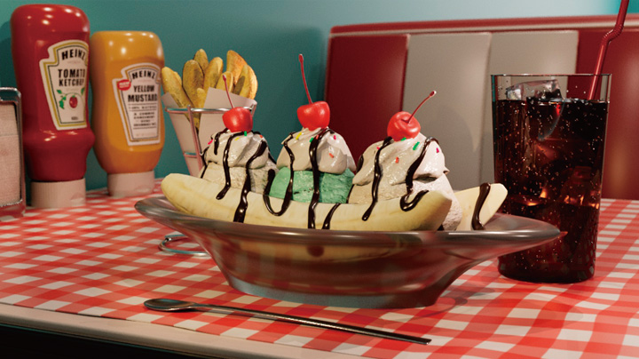 お城に住むゾンビ伯爵をイメージしデザインしました。背景にはゾンビ伯爵の館を配置し血しぶきをつけました。メインのゾンビ伯爵は暗闇で被ってもハットが目立つように彩度を上げています。