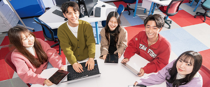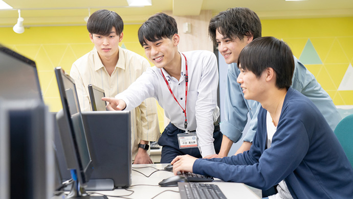 将来、SE・プログラマーの即戦力として活躍できるよう、実習中心のカリキュラムです。企業との教育連携により、特別授業や講演会・インターンシップなどを通して、最新の技術や実践力を身につけることができます。また、基本情報技術者試験(国家資格)の科目A試験免除も利用できるので、効率よく学習して資格を取得できます。