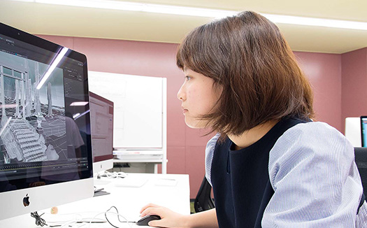 導入しているのはプロの現場でも使用されるハイスペックマシン。一人一台の環境で集中して学ぶことができます。