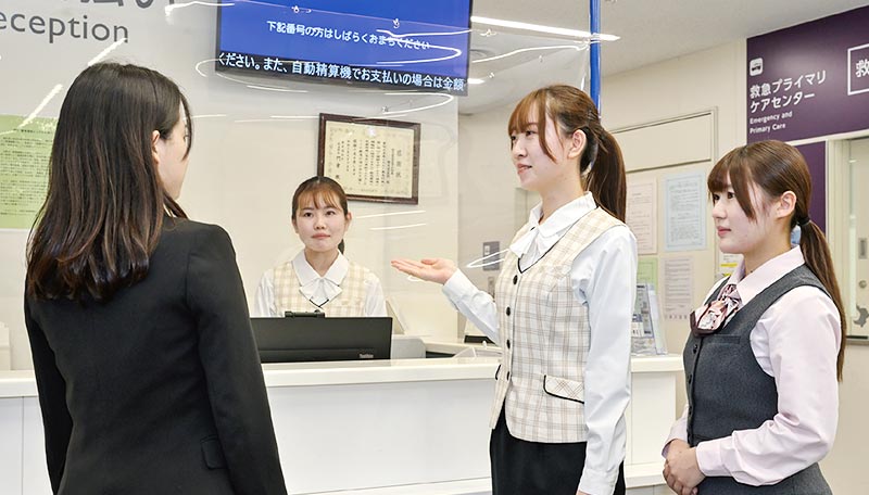 病院の受付は患者さんが最初に訪れる場所です。不安な気持ちを解消できるように、優しい笑顔と言葉遣いを意識しました。患者さんから「ありがとう」と言われた時は嬉しかったな♪