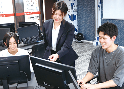 実践力を徹底して伸ばすため、基礎から応用レベルまで、アクティブラーニング中心に丁寧に学習を積み重ねます。個人でのスキルアップだけではなく、グループワークを通して社会で活躍するためのコミュニケーション力も育成します。