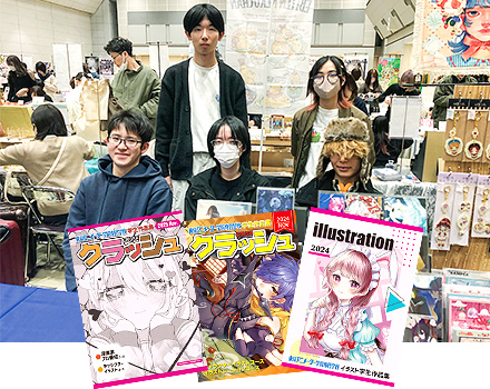 学内で行われるプロのイラストレーターによる特別授業や業界関係者からの企業説明会、学外で行われるイラスト・マンガ関連のイベントへの参加など、いろいろな経験を通じて将来クリエイターとして活動するための知識を身につけます。