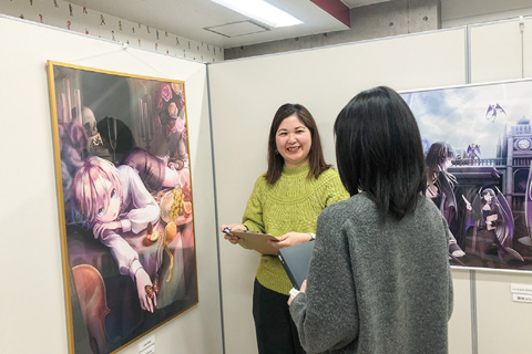 学内で声優事務所の所属オーディションを開催出版社やゲーム会社、テレビ番組制作会社など、イラストを使用するいろいろな企業から学生へのイラスト制作依頼が来ます。また学内・外のいろいろなコンテストにも積極的に参加するように指導を行っており、在学中からプロの現場に触れられる機会を多く設けています。さらに年度末には作品展を開催し、業界関係者を招待して学生の作品に直接アドバイスをいただけるようにしています。在学中からプロのイラストレーターとして活動できるようにサポートを行います。