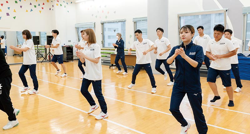 実習中心のカリキュラムになっています。1年時は6割、2年時は7割程度がスポーツトレーナーとして必要な実習を中心に授業カリキュラムになっています。プロのトレーナーから直接指導を受けることが出来るので、現場で通用する知識や技術を身につけることができます。