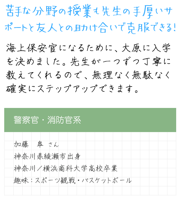大原学園には、夢と希望をいっぱいに頑張っている先輩がたくさんいます。そんな充実した学園生活を送っている先輩たちの元気な生の声をお届けします!
